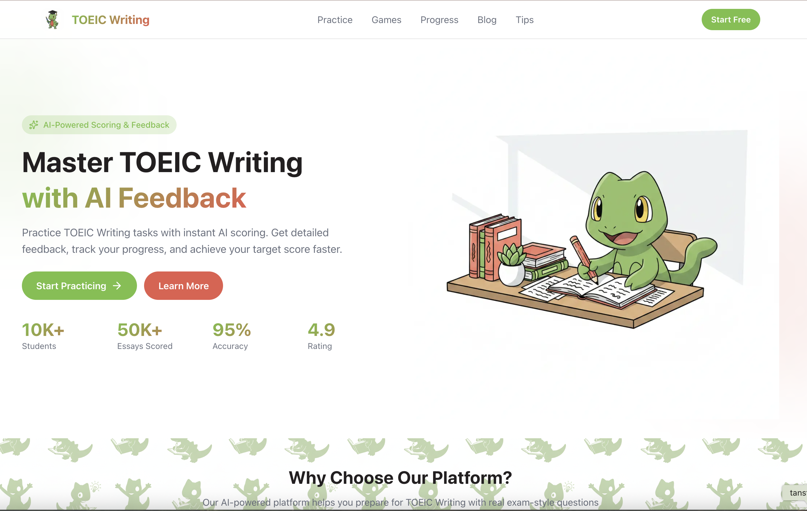 Practice TOEIC writing tasks with AI-powered feedback. Improve your business writing skills with guided exercises.