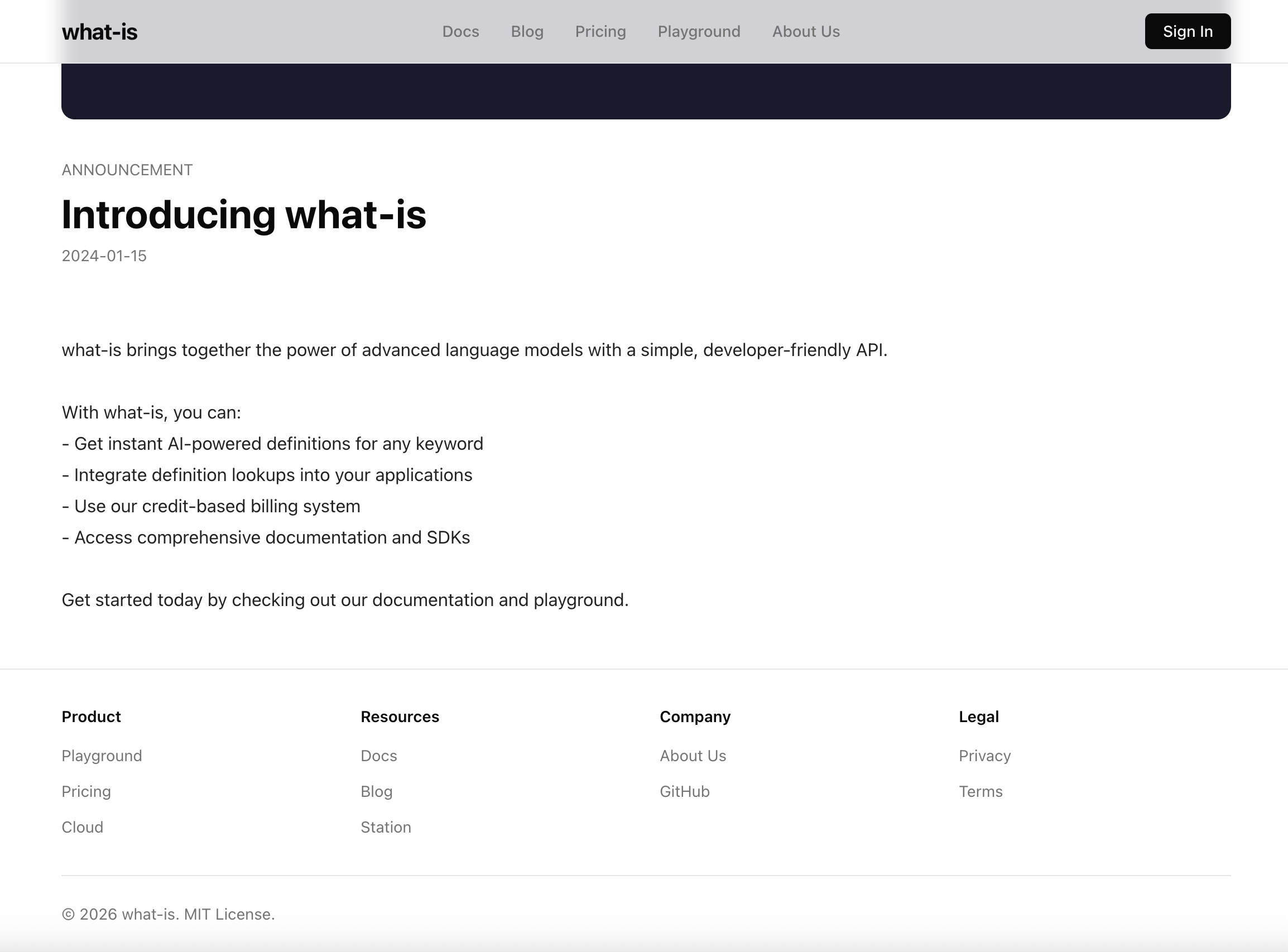 Get instant AI-powered definitions for any keyword. A developer-friendly API with comprehensive documentation, SDKs, and a playground.
